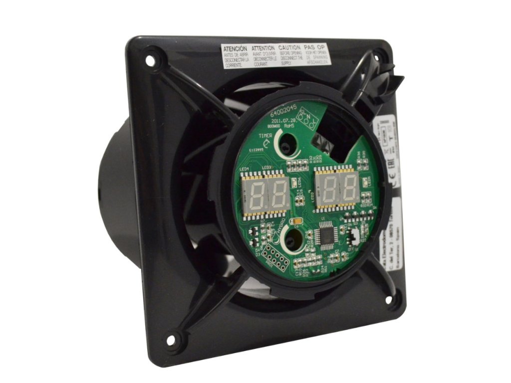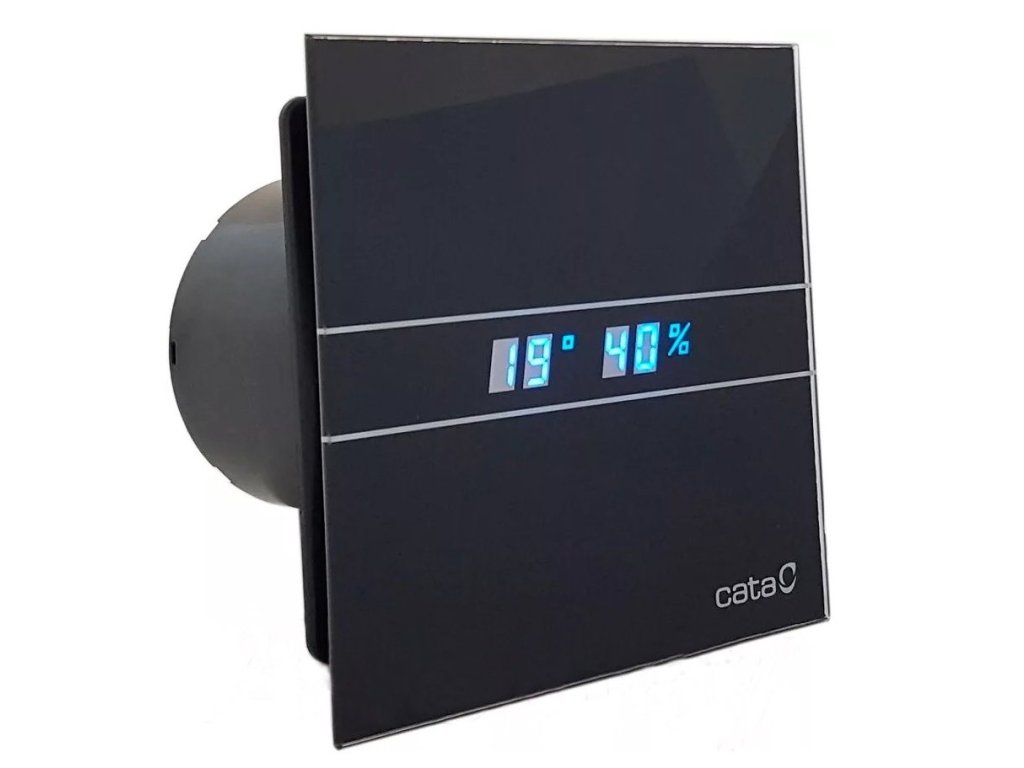 Koupelnový ventilátor CATA e100 GBTH sklo hygro časovač černý