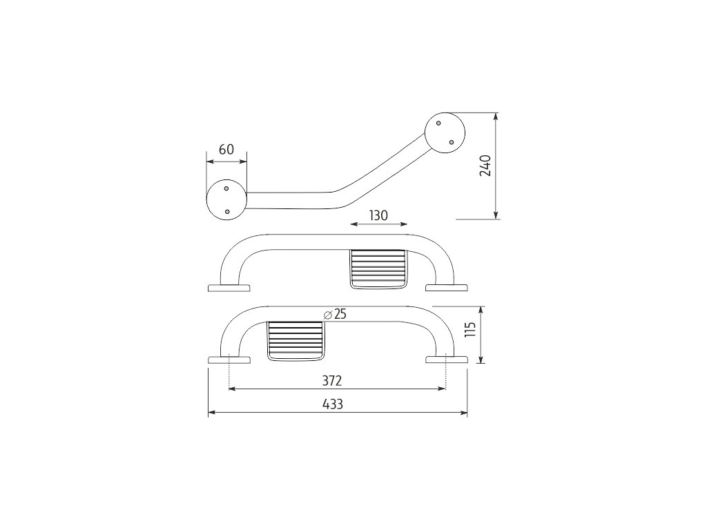 Madlo lomené s mýdelníkem 43,3 cm x 25 mm do koupelny, sprchy, pro seniory je skvělým doplňkem do koupelny. Často bývá koupelně vyčleněna jen opravdu malá plocha. A právě proto, že v této často nejmenší místnosti nebývá příliš prostoru pro estetické doplňky, měli bychom zaostřit svoji pozornost především na předměty, které plní konkrétní funkce. Řešením může být právě některý z následujících výrobků. Uchycení madla na každé straně dvěma šrouby.