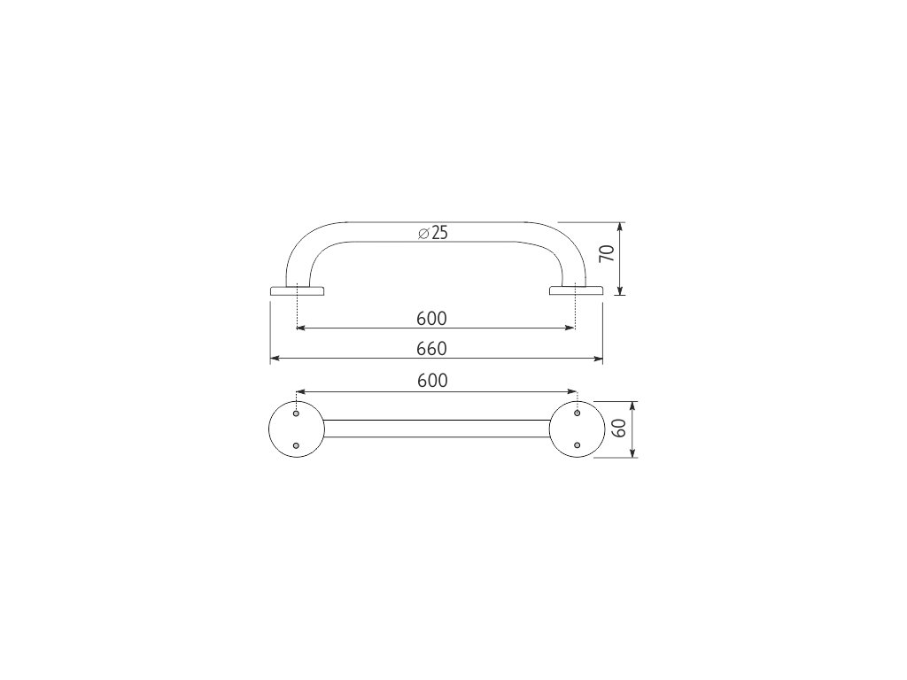 Koupelnové madlo 60 cm x 25 mm do koupelny, sprchy, pro seniory