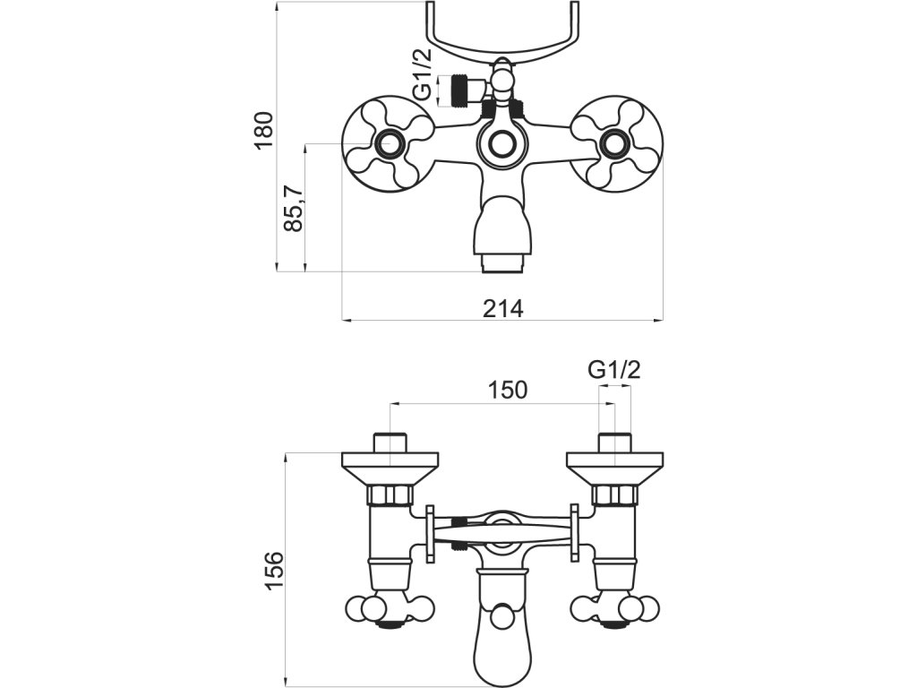 Nástěnná sprchová baterie 150 mm RETRO II 99121,0 s příslušenstvím