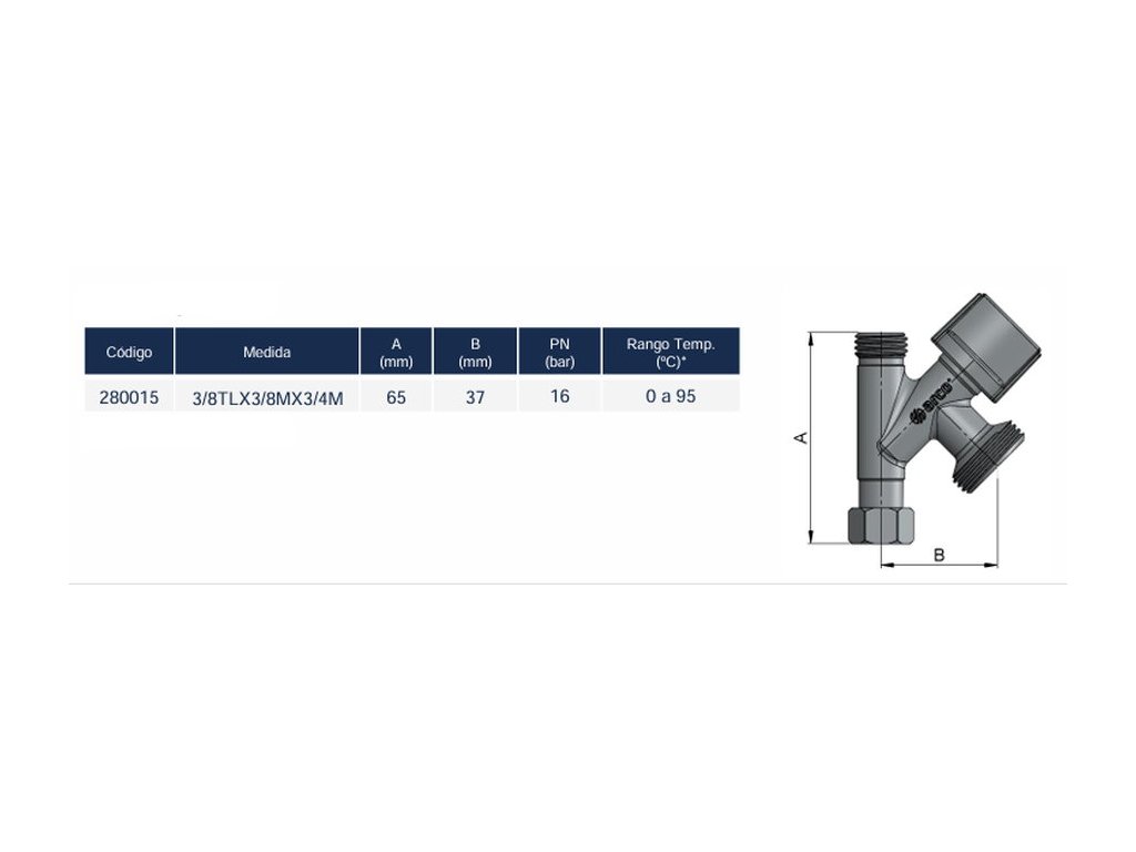 Úhlový ventil ARCO CONEKTA pro připojení pračky a myčky nádobí 3/8"x3/4"x3/8"
