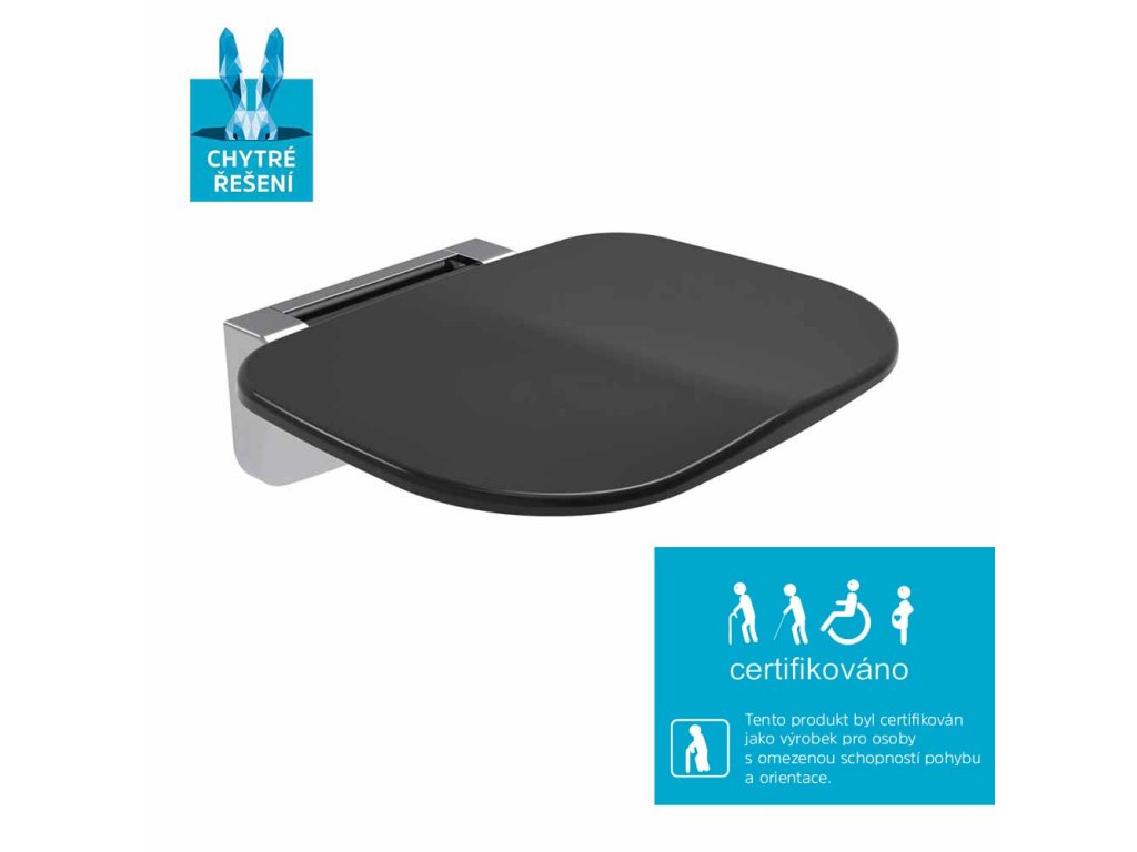 Pozn.: Na výrobek je vystavené Stavební technické osvědčení. Výrobek pro osoby s omezenou schopností pohybu a orientace - sklopná sedátka do sprchových koutů.