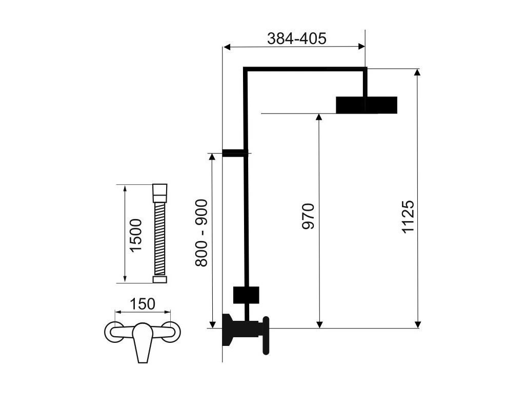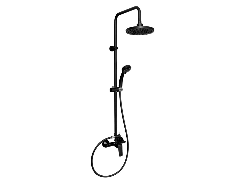 Kvalitní a odolná keramická kartuše 35 mm s prodlouženou zárukou 5 let. Prvotřídní provedení černá-mat. Set obsahuje nástěnnou sprchovou baterii s vrchním vývodem a roztečí 150 mm, hadici 150 cm, hlavovou sprchu s průměrem 200 mm, ruční sprchu a posuvný