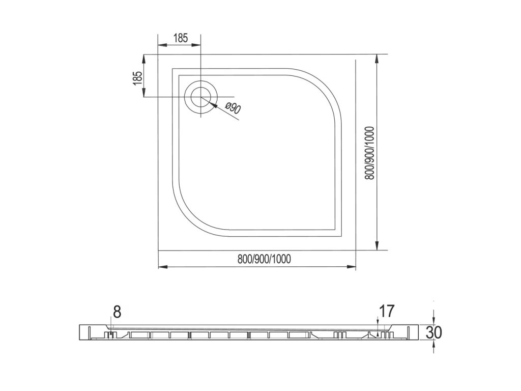 Sprchová vanička nízká čtvercová litý mramor 90x90 GELCOAT CV35M
