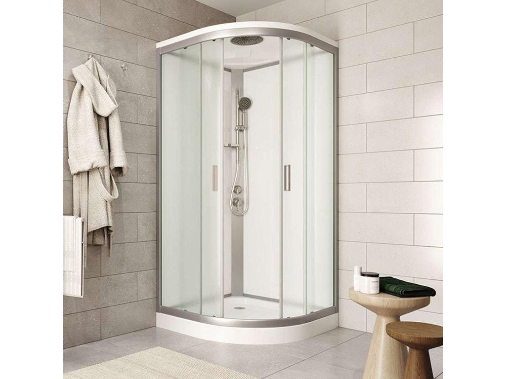 Sprchový box vnáší do ekonomické třídy nový rozměr kvality. Sklo je v designu Point, satin ALU profil. Tloušťka bezpečnostního skla je 4/4 mm. Sklo je dokonale utěsněno silikonovými lištami. Sprchový kout je osazen posuvnými dveřmi, které mají kvalitní dvojkolečkové horní pojezdy s možností perfektního seřízení. Dorazy zajišťují minimální nárazy při otevírání a zavírání sprchového koutu.