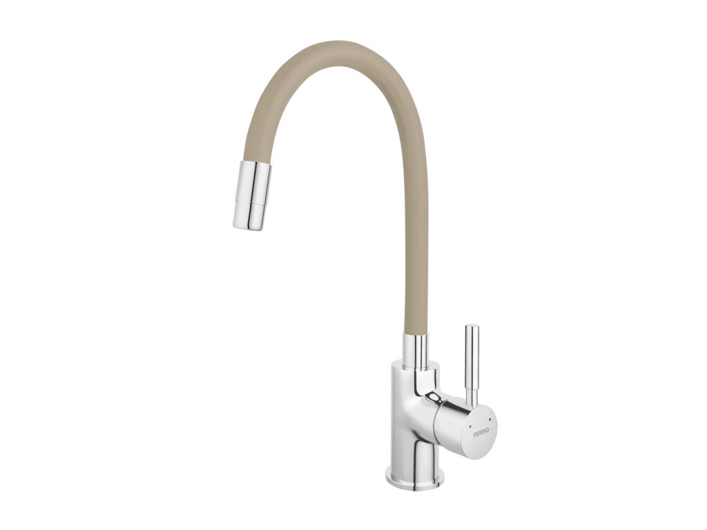 Dřezová stojánková baterie Ferro s barevným elastickým ramenem 70710,0BE, béžová-chrom