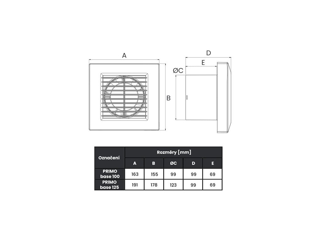Ventilátor do koupelny PRIMO BASE 100A/12V HQ s žaluzií