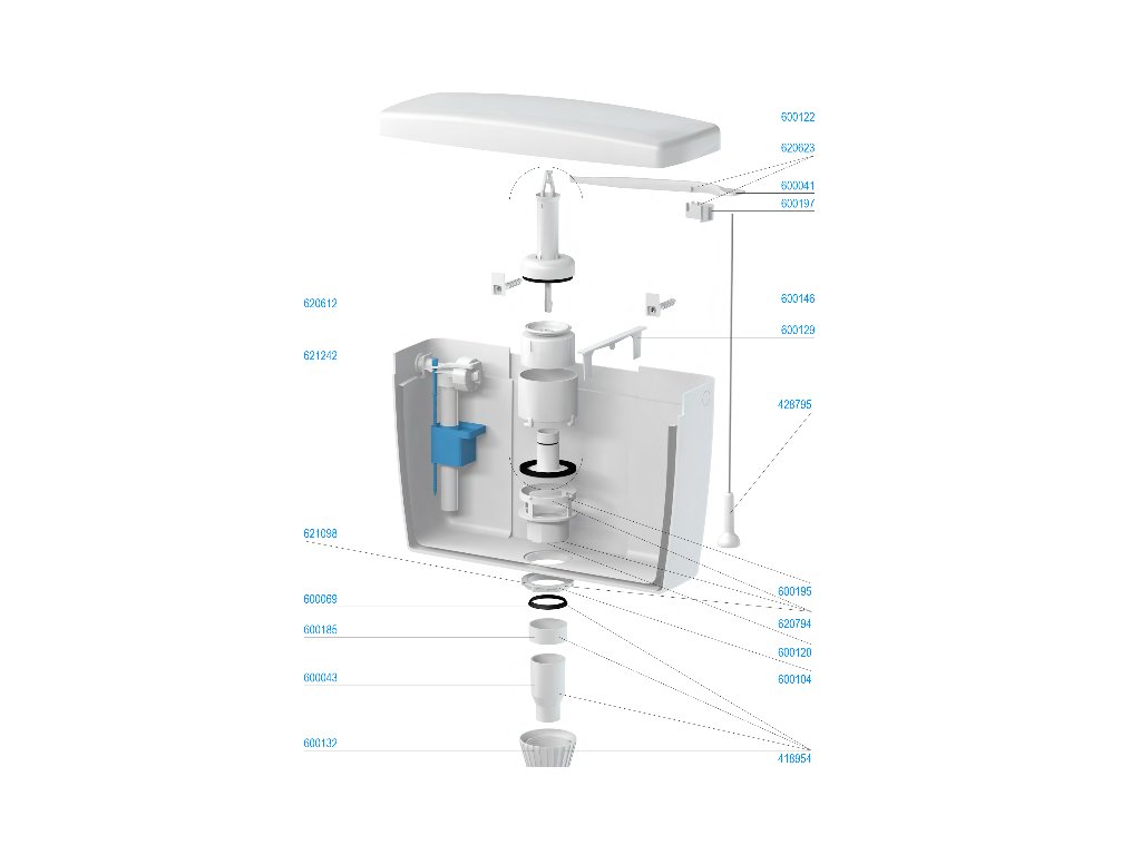 Součásti balení je připojovací sada na zeď a splachovací táhlo se šňůrou. Propojovací potrubí mezi nádržkou a klozetovou mísou není součástí dodávky.